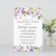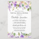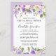 Combinação muito bonito de rosas roxos escuros, rosas roxos claros e flores brancas de marfim. Todos estão presos em uma variedade de folhas verdes. Juntos, eles criam bordas florais ao longo da parte superior e inferior deste chá de panela. O nome da noiva está escrito em uma fonte grande de script.