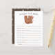 O chá de fraldas da menina do tema urso bonito deseja um cartão de bebê com ilustração de um filhote brincalhão com arco e corações cor-de-rosa. Os textos são editáveis. Atividade perfeita para jogar durante o chá e definitivamente será um excelente!