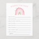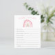 O chá de fraldas de uma garota com o tema do arco-íris bonito deseja um cartão de bebê com ilustração do arco-íris rosa pastel. Os textos são editáveis. Atividade perfeita para jogar durante o chá e definitivamente será um excelente!