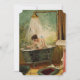Este cartão postal francês branco ilustra uma versão vitoriana de um chá de panela. É uma imagem perfeita para convites, postagens, cadernos, revistas, posters e decoração compre de noivas. O papel mármore de coordenação acentua a imagem cromolitográfica. Adicione seu toque pessoal para obter uma mensagem de chá de panela exclusiva e divertida.