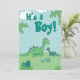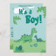 É um menino! Dinossauro, convite de bebê com mãe dino e criança. Paisagem pré-histórica com convite de chá de fraldas de ovos de dinossauros.