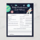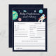 Chá de fraldas de previsão e cartão de aconselhamento sobre o tema do espaço em branco, com ilustrações de planetas, astronautas, estrelas. Os textos são editáveis. Um jogo perfeito para jogar durante o chá e definitivamente será um excelente! O cartão aos hóspedes para predizer como o bebê se pareceria.
