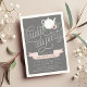 Convide amigos e família para comemorar a noiva para estar com nossos convites de festas de chá de noiva chic e elegantes. Design apresenta um fundo de cinza macio com uma ilustração de bule rodeada por florais cor-de-rosa e botânicos verdes, com "chá de panela tea" em letras modernas de escrita. Adicione os detalhes do seu chá de chá de panela em letras brancas com o nome do convidado de honra exibido em um banner rosa pálido e pálido.