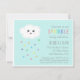 Esfregue a múmia para ser ou mãe e recém-nascido com muito amor! Este convite para o aspergaminho de bebê em película de cor pastel tem uma nuvem de desenho animado que sorri alegremente e chove gotas de chuva nas cores do arco-íris. Fundo azul claro com uma simples borda branca. Convite neutro de gênero sem revelar o gênero do bebê. Personalize facilmente com os detalhes da festa do chá de fraldas.