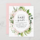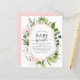 Verde-orçamento Eucalyptus Botanical Watercolor e Rosa Dourado - Blush Pink Geométrico Sage Green Primavera Baby Sprinkle Invices em fundo branco - inclui uma bela e elegante tipografia de escrita com folhas botânicas modernas e verde para a celebração da Mãe-Ser especial.