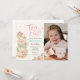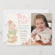 Chá Floral Rosa Para Dois Convite Fotográfico De Aniversário. Convite de Aniversário do Tea for Two, Cor-de-Rosa Editável - Celebre seu segundo aniversário com uma encantadora festa de chá cheia de flores, doces e muito amor!