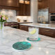 Adicione um toque de elegância moderna ao seu espaço com esta porta copos geométrica de arenito na moda! Apresentando um padrão abstrato de triângulos verdes e em camadas esboçados em ouro, essa porta copos combina o design contemporâneo com funcionalidade. Perfeito para proteger as superfícies de derramares de bebidas e calor, é uma adição de excelente a qualquer mesa de café, mesa ou área de jantar. Ideal para casa, escritório ou como um presente pensativo para amantes de design!