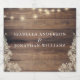 Esta design de casamento ao ar livre mostra seus nomes personalizados em um fundo de madeira rústica. Nas extremidades dessas etiquetas há um lugar falso.