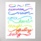 A impressão de arte poster apresenta as palavras inspiradoras para os diferentes centros chakra. Refere que estamos todos criados da mesma fonte única de luz e amor do espírito no mundo. Essas instruções podem ser personalizadas com suas próprias mensagens de reconhecimento pessoal. A arte vem de uma série "Uma Luz, Um Amor". As palavras "amor leve UM" estão em cores arco-íris para refletir todas as cores chakra. Individualmente, os diferentes centros de energia de chakra são palavras coloridas "consciência" (violeta), "visão" (índio), "voz" (azul claro), "coração" (verde), "pensamento" (amarelo), "sentimento" (laranja) e "ser" (vermelho). Estes impressões ou posters de arte podem ser personalizados com suas próprias opções para fazer presentes personalizados de arte de conscientização espiritual!