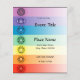 Um design gráfico dos sete chakras em um folheto de evento 4,5 x 5,6. O folheto tem modelos de texto para sua personalização e a cor de fundo é personalizável.