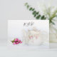 Personalize a Placa de Resposta RSVP de Casamento de Roupas bonito e Rosa com a data de resposta específica do casamento. Este elegante cartão de casamento florístico personalizado r.s.v.p. apresenta uma fotografia floral de um pote de chá florido com flores rosas cor-de-rosa e cebola branca num pano de mesa úmido. Perfeito para o casal que planeja uma festa de chá clássico ou uma recepção de casamento de chá alto.