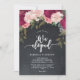 Um belo convite floral/botânico "Nós fugimos/nós amarramos o nó" com um design de folhagem floral cor-de-rosa-boho e burgundy e um fundo de efeito de quadro-negro e o lado inverso. Fácil de editar ou excluir os campos de texto disponíveis para personalizar as informações com seus próprios detalhes para um acabamento profissional e personalizado. Itens correspondentes estão disponíveis nesta coleção elegante. Visite meu compro para ver a faixa de cheios, incluindo cartões rsvp, se necessário, e favoreça adesivos.