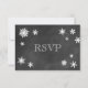Flocos de neve brancos e neves em um fundo de quadro de chalkboard decoram este RSVP para o Convite de Casamento de Chalkboard Snowflake. Se forem necessários itens adicionais nesta coleção, entre em contato conosco em prettyfancyinvites@gmail.com com sua solicitação.