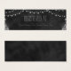 String of Lights Chalkboard © Sunny Mars Designs. Na moda, moderno, elegante, clássico, de moda, personalizável em chic, mini cartões de registro casual de 3" x 1" com um belo design de quadro negro com bolbos de cordas ou luzes de cordas penduradas acima com um design floral tropical abaixo.