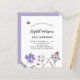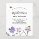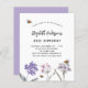 Um fundo branco. Decorado com abelhas e pintado flores silvestres em violeta e rosa. Personalize e adicione um nome e detalhes da parte.