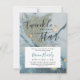 Twinkle Twinkle Little Star Chá de fraldas Convite em ouro brilhante e azul claro. Estrelas e lua num fundo de mármore moderno e brilhante. Sexo neutro.