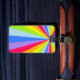 O raio-arco-íris brilhante estende a bagagem em vermelho, laranja, amarelo, azul, verde, roxo. Personalize o reverso desta etiqueta multicolorido com o seu nome e endereço. Padrão e etiqueta de Sarah Trett.