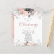 Tipografia floral branca-miúda e escrita rosa milenar. Convites para comemoração floral. Você pode adicionar fotos à parte traseira ou texto adicional, se necessário.