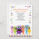 Comece sua celebração fora do direito com este convite do monstro. É colorido e divertimento! Há muitos monstro coloridos diferentes ao longo da parte inferior deste convida. Há uma polca colorida ao longo dos lados do convite. Verifique para fora nossos muitos outros produtos e projete-os nesta linha. ©babystar