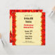 Um convite personalizado de festa de aniversário ou CHURRASCO para bolachas de graduação com arte de chamas vermelhas e laranja com texto editável no estilo ocidental marrom e letras vermelhas na frente e enfumaçado lendo CHURRASCO no verso.