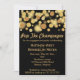 Este design apresenta um padrão de pontos dourados com um padrão preto. Personalize este convite com os detalhes da sua festa de noivado. Este design também funciona bem para jantas de ensaio, uma Festa de Ano Novo e festas de solteira.
