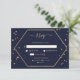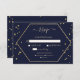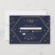 Moldura geométrica moderna de ouro em um rhomólogo, um pouco em forma de diamante. romance sofisticado em um rsvp que corresponde ao convite Deep blue e Champagne: https://www.zazzle.com/deep_blue_and_champagne_invitation-256281463476489043?view=113469114630142774. Esse RSVP inclui opções básicas, assim como as áreas de aceitação e declínio habituais.
