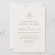 Um sofisticado convite para o casamento, com uma delicada ilustração floral, dentro, um quadro oval com espaço para iniciais personalizadas. Projetado em uma elegante paleta de cores de champanhe, este convite combina a tipografia clássica com um layout mínimo refinado. Perfeito para casais em busca de eterno, papelaria romântica de casamento. Todos os textos e cores podem ser totalmente editados, fazer que seja fácil combinar com o tema do casamento ou criar a sua própria variação de cor.