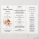 Programa de casamentos triplo com flores coloridas em champanhe, rosas em cor castanho chocolate e cor-de-rosa poeirento, acentuado com folhagem em relevo dourado. Por favor, note: os detalhes gravados em ouro neste programa de casamento são uma imitação, não uma folha de ouro, e também, mudar o tipo de papel pode tornar o programa difícil de dobrar.