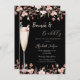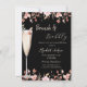 Vidro de champanhe e flores silvestres legantes em fundo preto. Um convite bonito que pode ser personalizado com seu nome. Selecione o botão "personalizar" para alterar o estilo, a cor e o tamanho da fonte.