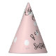 Este bonitinho chapéu de festa de aniversário de menina no Halloween apresenta ilustrações de um fantasma, gato preto, aranha, morcego e abóboras. O texto diz, "Spooky One."