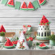Crie um adorável evento de aniversário com esses chapéus bonitinhos de festa, esse porquinho está comendo melancia e suco está em seu rosto. Balões de melancia acentuam uma feliz festa e celebração de aniversário. O confete cor-de-rosa caindo do topo e as sementes de melancia pretas no fundo. Modelos são todos fornecidos.