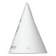 Chapéu de festa com uma ilustração fofa de uma baleia. A baleia está vestindo um chapéu de festas listradas vermelho e branco e começou a festa de aniversário que acontece em um copo d'água cheio.