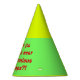 Características deste design parvas do chapéu do partido da piada a pergunta, "porque é você que faz nos vestir estes bonés de burro obnóxios?!"