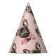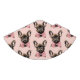 Desenho colorido de lápis de um brindle (preto e castanho) de um buldogue francês vestindo um arco rosa. Adorável!