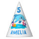 Cute Dolphin Sea Animals Name Birthday Party Party Hat. Cute smiling dolphins in cartoon style. Customize the name and age on the hat. Fun and cute personalized dolphin hat for a girl or a boy.