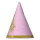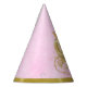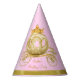 Chapéus de festa de aniversário da princesa com carruagem real dourada em um lindo fundo rosa e dourado. Você pode personalizar com o texto de sua escolha no estilo de fonte e cor que preferir.
