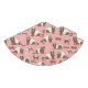Furões desenhados à mão, xoxo e chapéus de festas em forma de corações, fundo rosa.