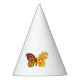 Borboleta de monarca laranja com asa decorada com papoila amarela e vibrante da Califórnia em fundo branco.