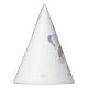 Chapéus de papel de festa de aniversário unicórnio personalizados e bonitos. Este divertido design personalizado apresenta uma doce ilustração de unicórnio, estrelas e um arco-íris. Cores cor-de-rosa, roxo, azul e amarelo com um toque de brilho dourado sujo.