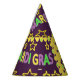 Este Partido que apresenta uma design animada de um cartaz com as palavras Mardi Gras nas cores de Mardi Gras em um fundo amarelo. Perfeito para comemorações e festas de Mardi Gras.
