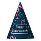 Uma festa colorida que adorava confete e fitas. O chapéu enfatizando a vibrante design e a animada mensagem de "Feliz Reforma".