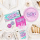 Coloque o tom para a sua festa da discoteca com mantimentos em espirais de verde-rosa, roxo e menta. Perfeito para uma festa de aniversário de temas retrô, boho, disco ou rolo dos anos 80 ou 90. Funciona bem para aniversários de todas as idades! Envie-me uma mensagem se quiser um fundo diferente ou trabalho de arte-feliz para personalizar para você.