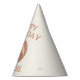 This sweet birthday party hat design features the adorable Slumberkins Sloth character with a calm, gentle expression and warm neutral tones that create a cozy woodland feel. The soft blush and beige color palette keeps the look soothing and child-friendly, while the curved “Happy Birthday” text and customizable name add a personal, celebratory touch. The clean, centered layout makes the design modern and easy to coordinate with matching décor. Perfect for baby birthdays, toddler celebrations, or animal-themed parties, this design adds a charming Slumberkins touch to any special day.