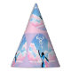 Feminine silhouettes stand beneath a cotton candy sky with a white transgender symbol in the sky like the bat signal, it has a heart in the middle.