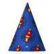 Ilustração de um foguete giro no espaço sideral, cercado por estrelas, e uma pequena nave OVNI verde. Perfeito para crianças ou adultos divertidos.