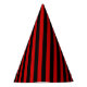 Este é um chapéu à moda da festa de aniversário a vestir-se para um partido. Caracteriza listras vermelhas e pretas.