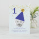 Engraçado Chapéu do Partido - Convite para primeiros aniversarios. Certifique-se de recortar sua foto do bebê para ampliar / fechar para ter certeza que ela está certa com o chapéu da festa.