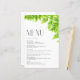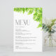 Adicione um sotaque verde à sua capa de tabela de eventos com este cartão de menu personalizável. Apresenta a cor d'água das folhas verdes do feno. Personalize adicionando seus detalhes. Este cartão de cardápio é perfeito para casamentos de primavera, chás de fraldas, chás de panela, aniversários e muito mais.