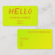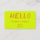 Modelo de cartão de negócios e casual. Olá, escrevendo sobre fundo sólido amarelo chartreuse com fontes laranja. A design simples e moderna de Alma Wad. Personalize agora. Embalagem de 100 unidades.