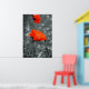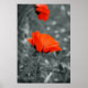 Efeito da chave de cor, papoila após a chuva, gotas de chuva, fundo da cinza